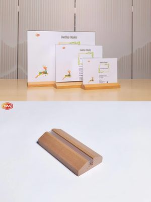 ত্রিভুজাকার কাঠের বেস সহ টি আকৃতির এক্রাইলিক সাইন হোল্ডার